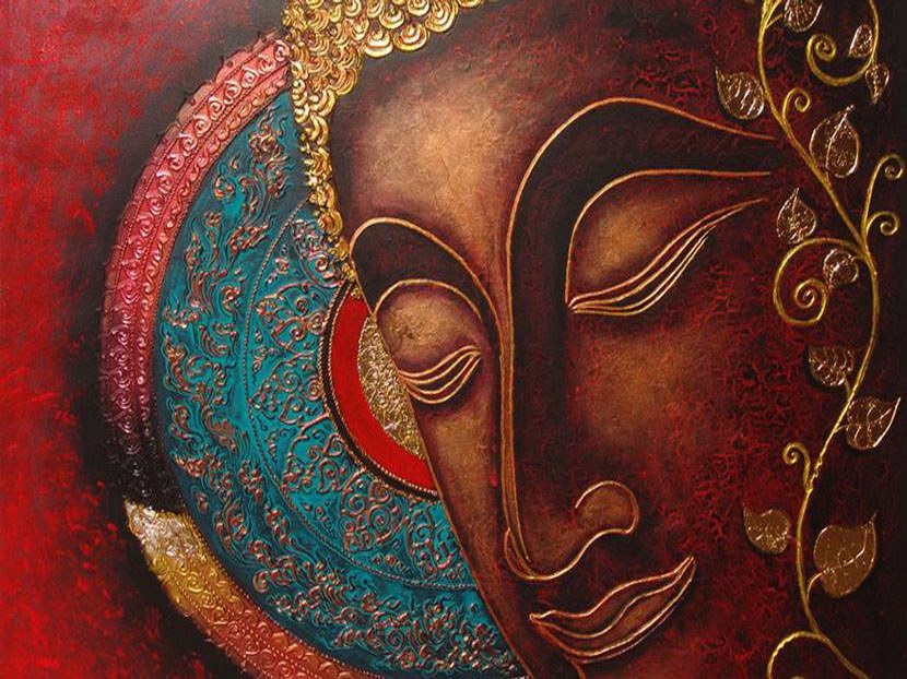 The «Buddha Painting 28», a painting that inspires inner peace. Hand-painted reproduction, ideal for a relaxation space.