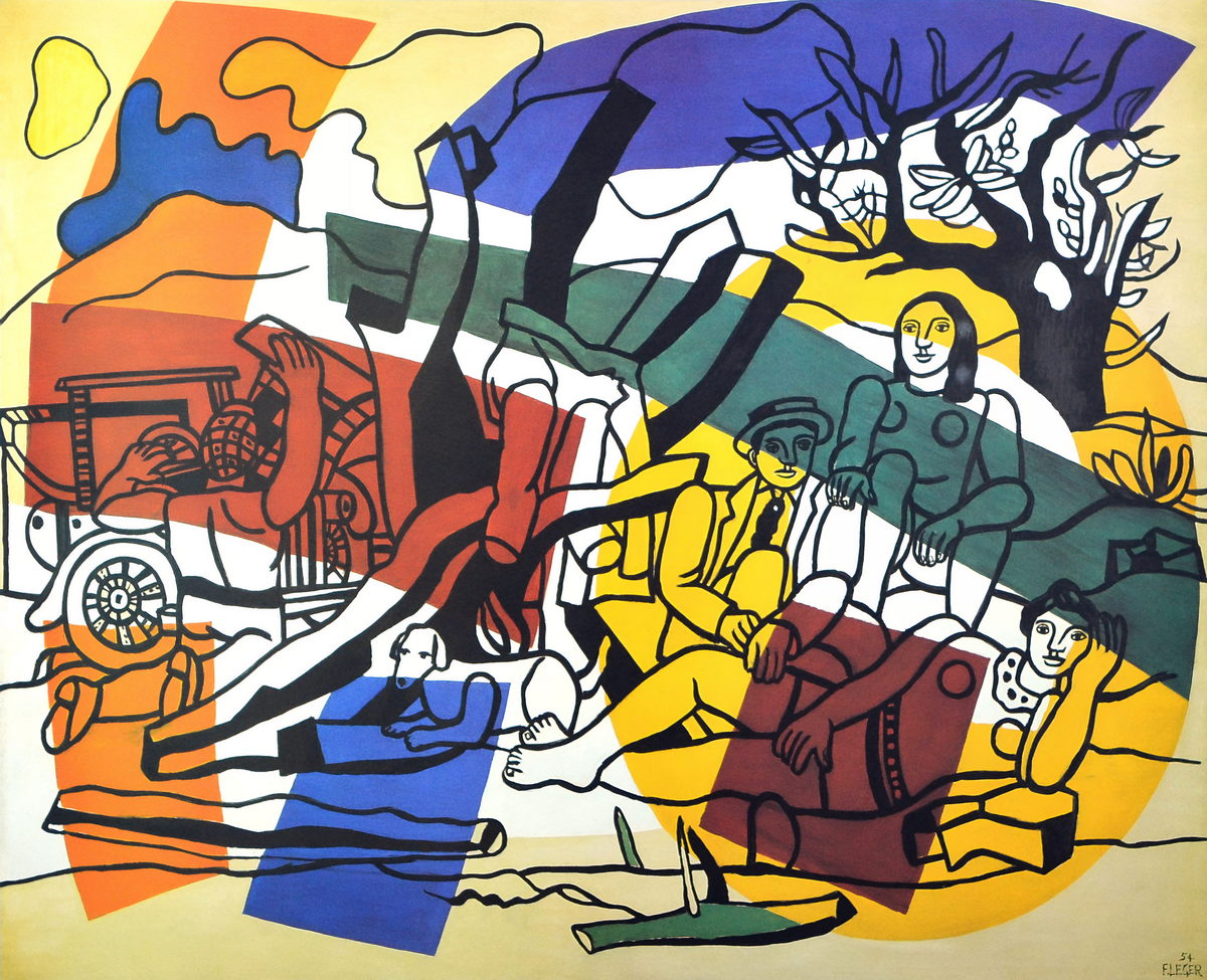 Reproduction of “Country Outing 1” (Leisure) by Fernand Léger. A popular leisure scene with bright colors, emblematic of his post-war style.