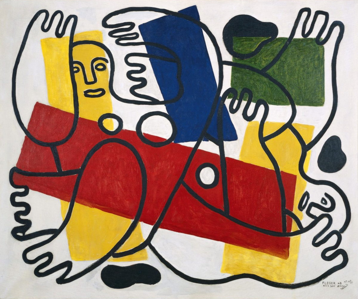 Reproduction of “Divers” by Fernand Léger. A dynamic abstract work from the Divers series, with black lines and primary colors.