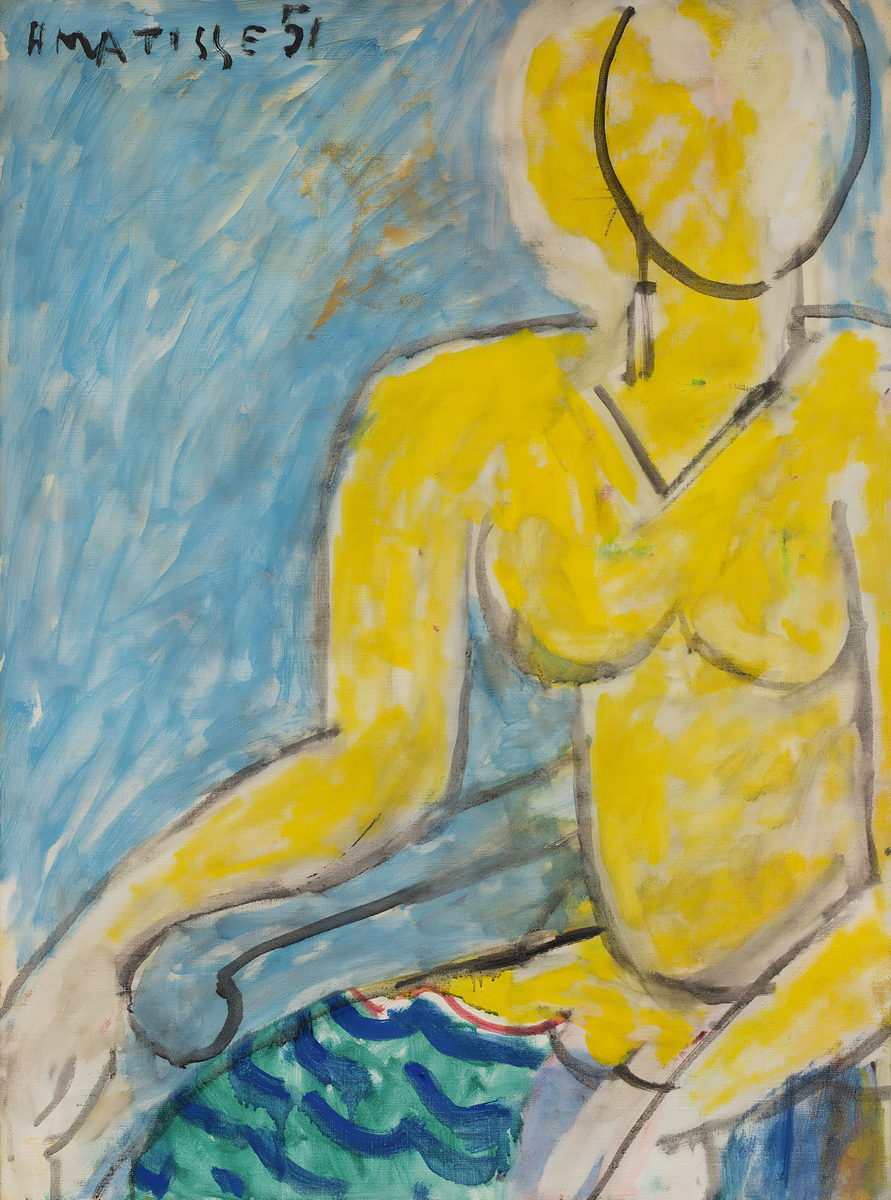 Reproduction of Katia in a Yellow Shirt, a solar and graphic work from Matisse’s late career.