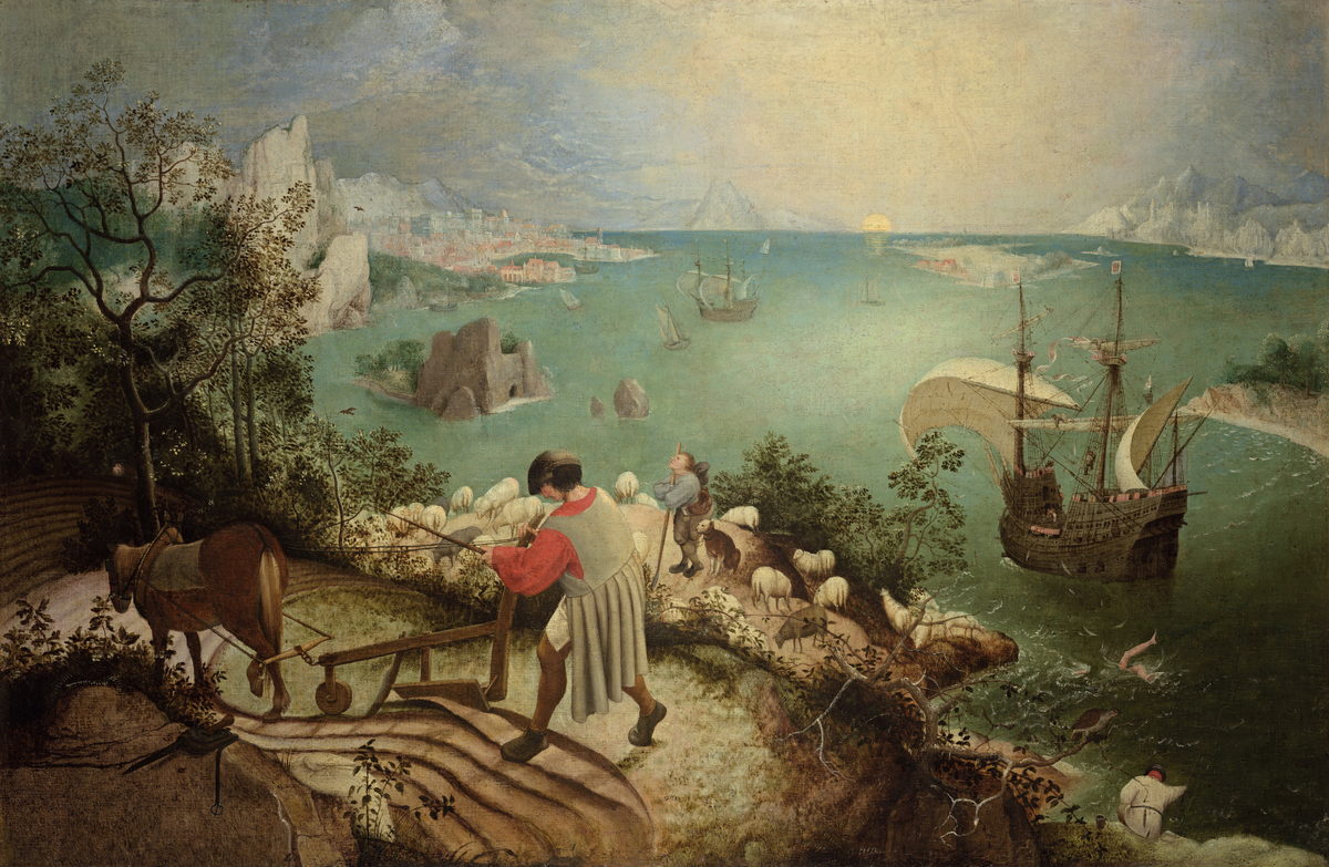 Order a reproduction of Bruegel’s “Landscape with the Fall of Icarus”. An oil painting that explores the Greek myth with a unique perspective.