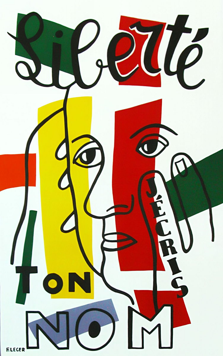 Reproduction of “Liberty I Write Your Name” by Fernand Léger. A modern and graphic lithograph illustrating the poem by Paul Éluard.