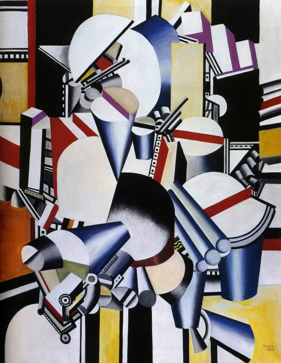 Reproduction of “Mechanical Compositions” by Fernand Léger. An abstract and complex painting from his mechanical period, celebrating the machine.