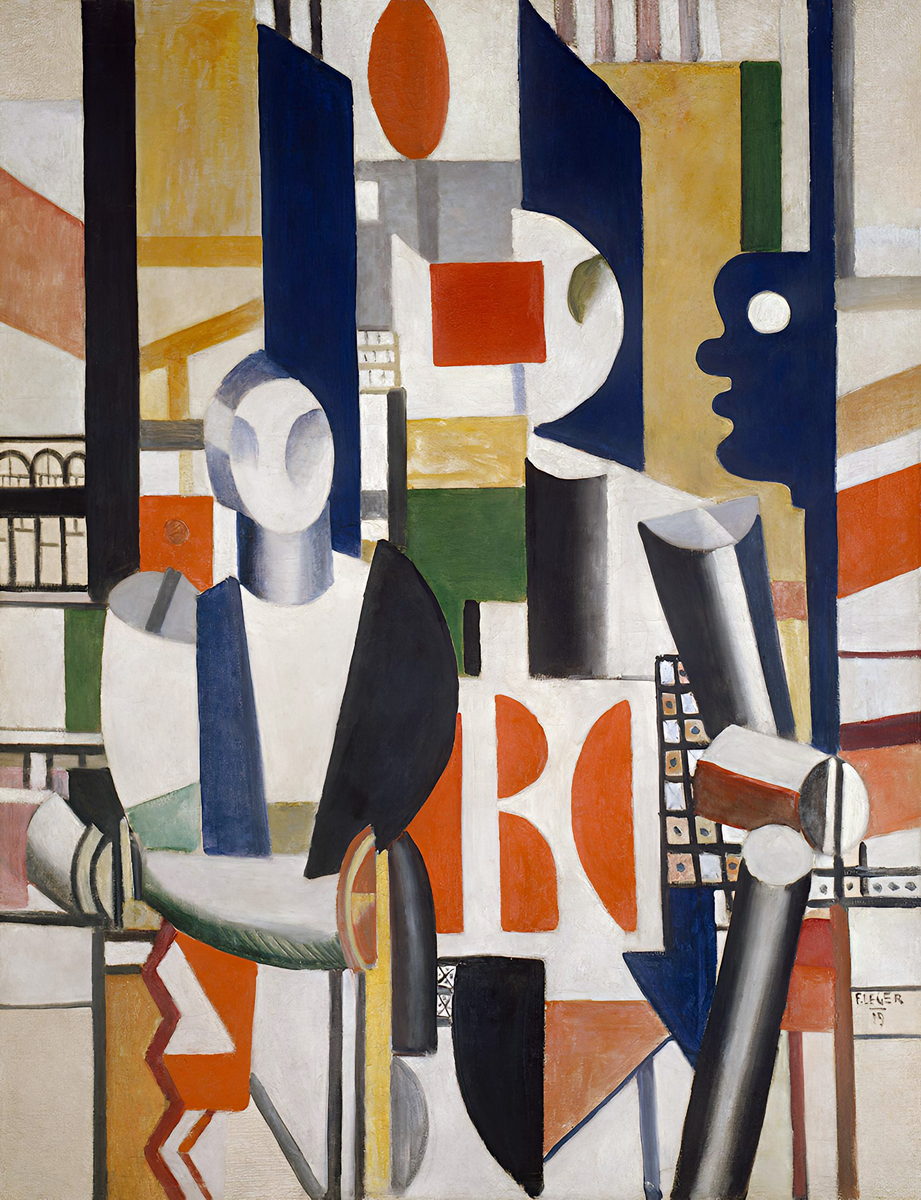 Reproduction of “Men in the City” (1919) by Fernand Léger. A major Cubist painting of the modern city and robotic figures.