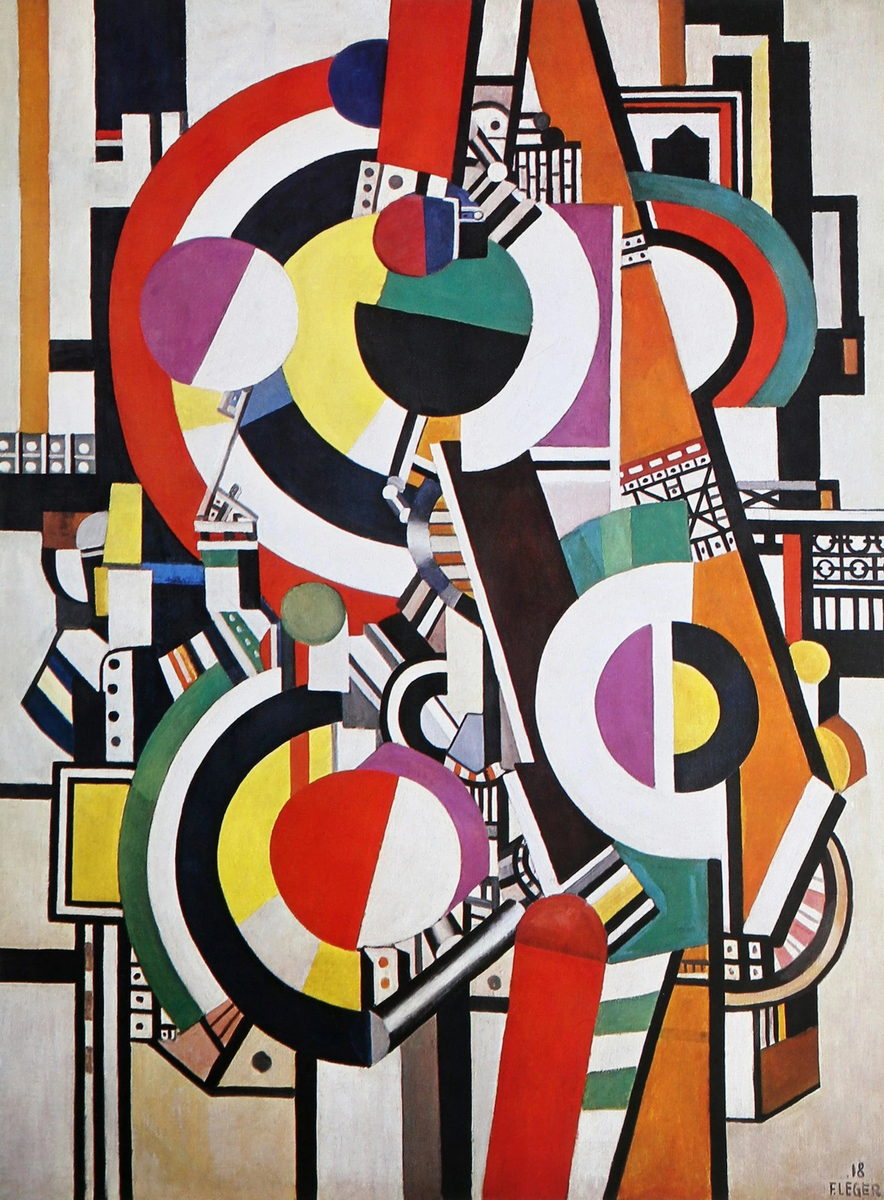 Reproduction of “Modern Art and the Metropolis” (1918) by Fernand Léger. An abstract Cubist work capturing the energy of the modern city.