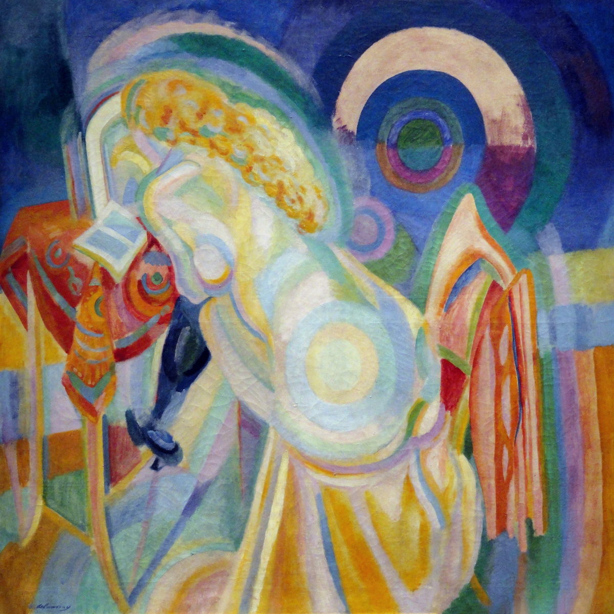 A sensual, Orphic vision of woman by Robert Delaunay. This abstract painting breaks down form into a rhythm of pure colors.