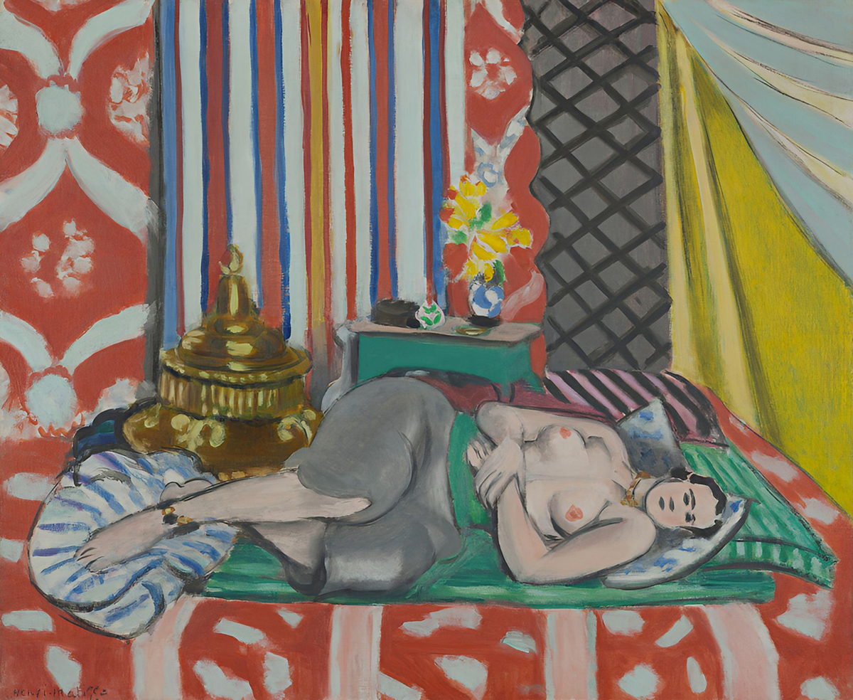Reproduction of Odalisque in Grey Trousers, a rich and colorful interior scene.