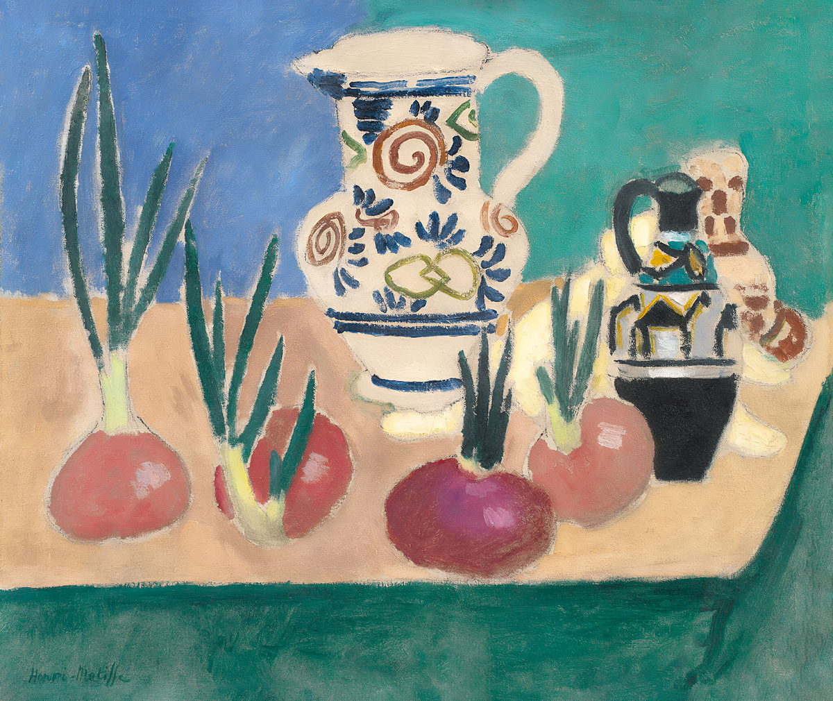 Reproduction of Pink Onions by Matisse, a soft and rhythmic still life from 1906.