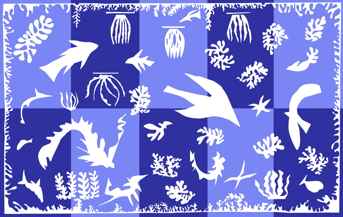Reproduction of Polynesia, The Sea, a soothing blue and white composition by Matisse.