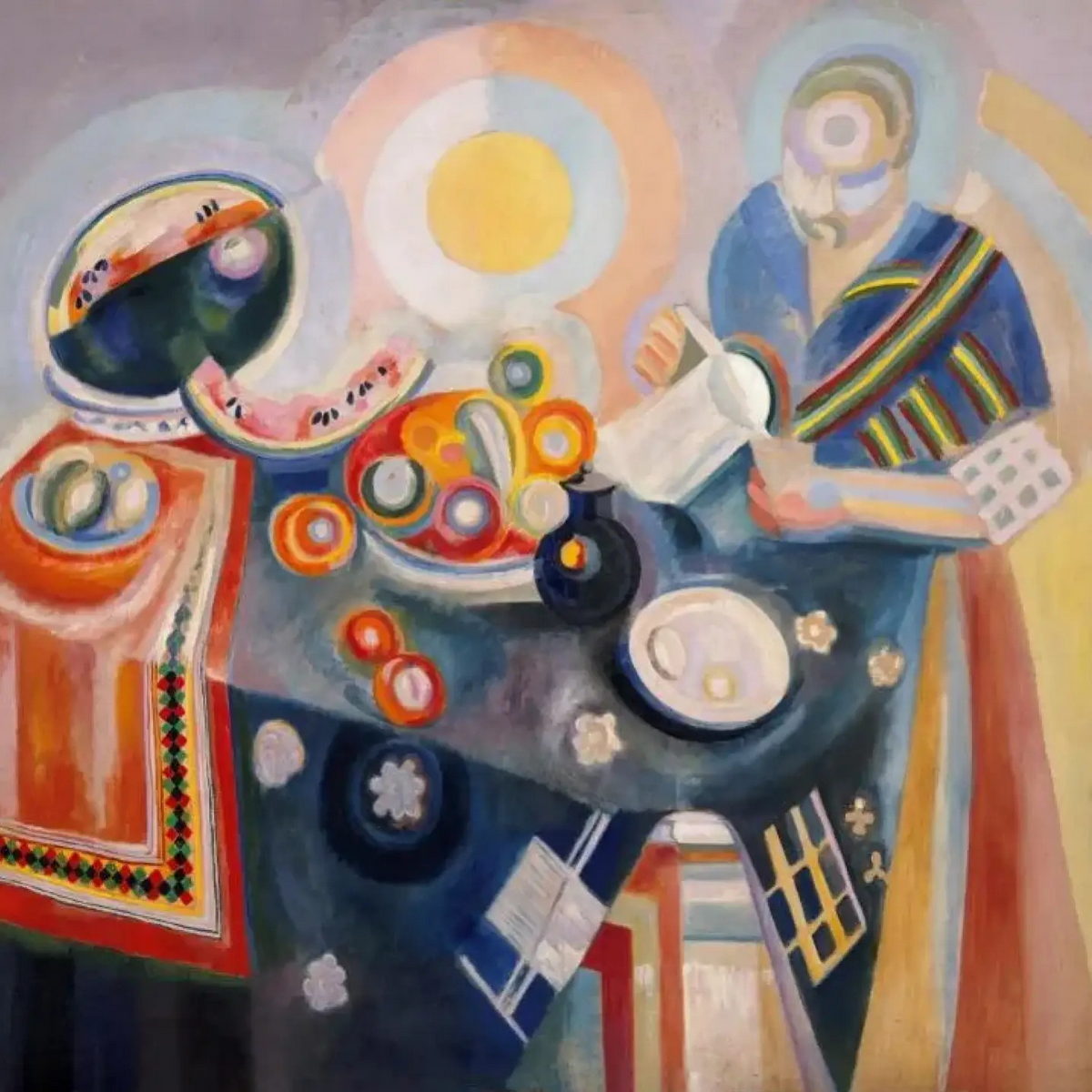 A vibrant still life from Robert Delaunay’s Portuguese period. A celebration of light and color in the Orphic style.