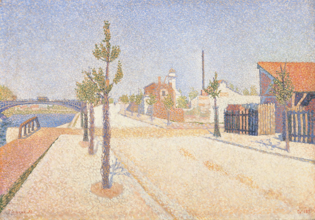 Reproduction of Quay at Clichy by Signac, a sunny view of the Parisian suburbs.