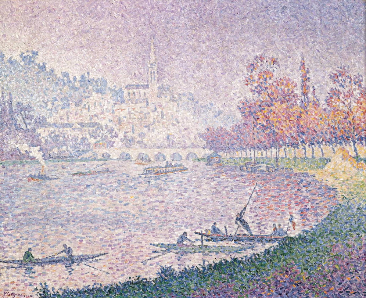 Reproduction of Saint-Cloud by Signac, a soft and colorful view of the Seine.