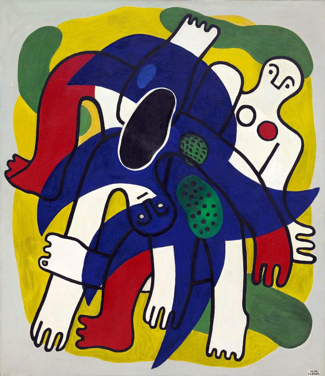 Reproduction of “Starfish” by Fernand Léger. An abstract and biomorphic artwork with bright primary colors (blue, yellow, red).