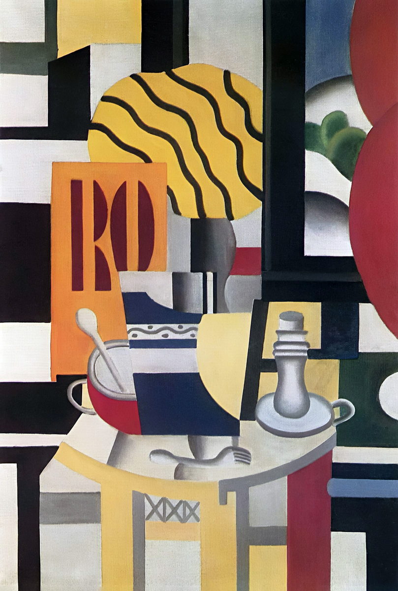 Reproduction of “Still Life with a Candlestick” (1922) by Fernand Léger. A geometric and orderly Cubist (Purist) composition.