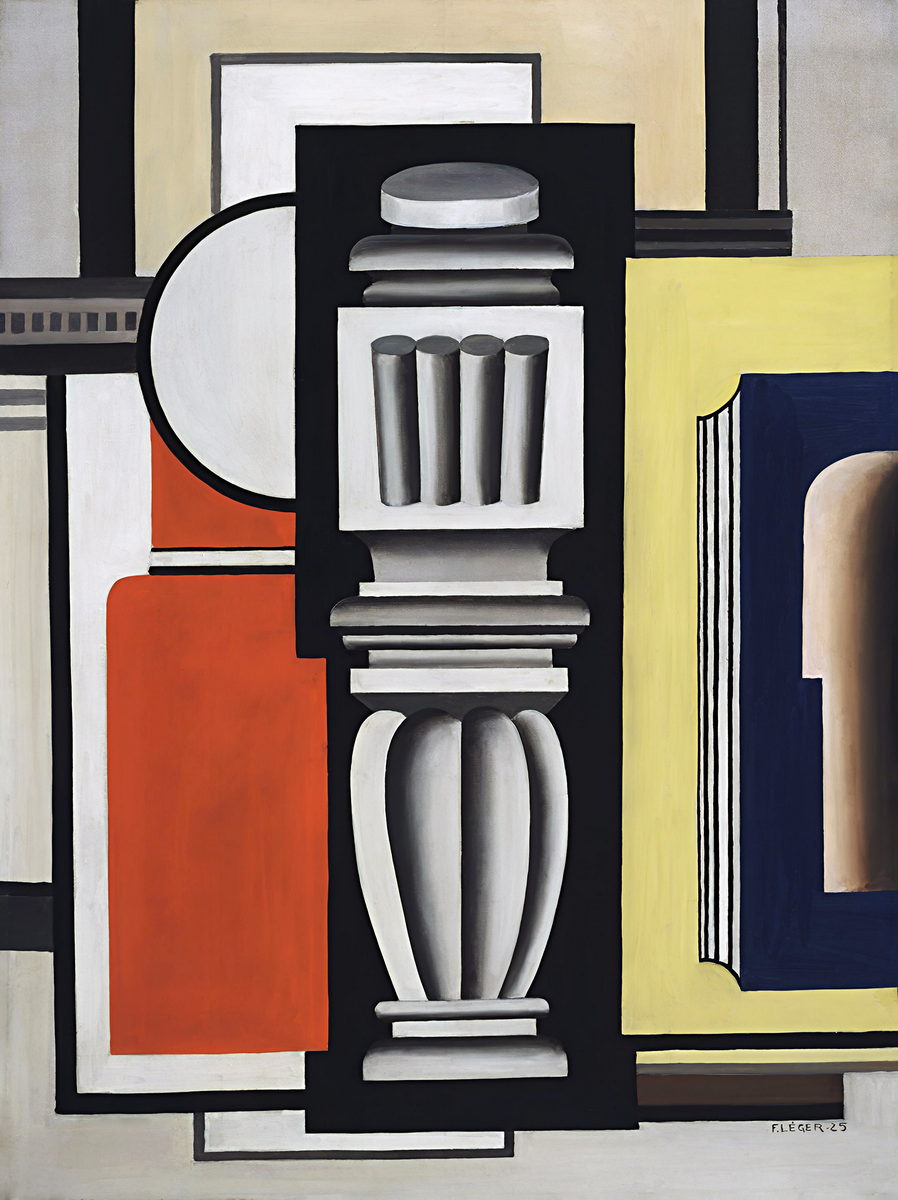 Reproduction of “The Baluster” (1925) by Fernand Léger. A monumental and Purist still life with geometric forms and pure colors.