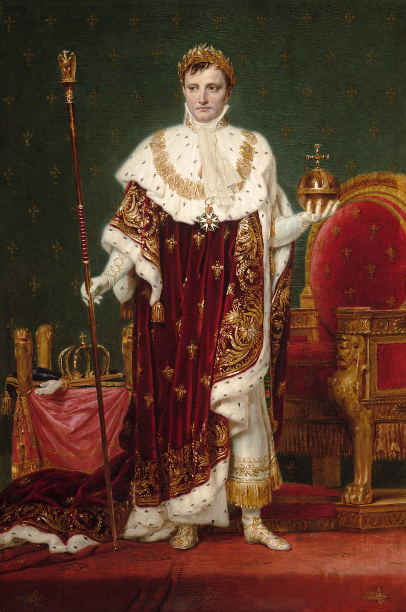 Hand-painted reproduction of the famous portrait of Napoleon I by David. A majestic image of imperial power, a masterpiece of Neoclassical art.