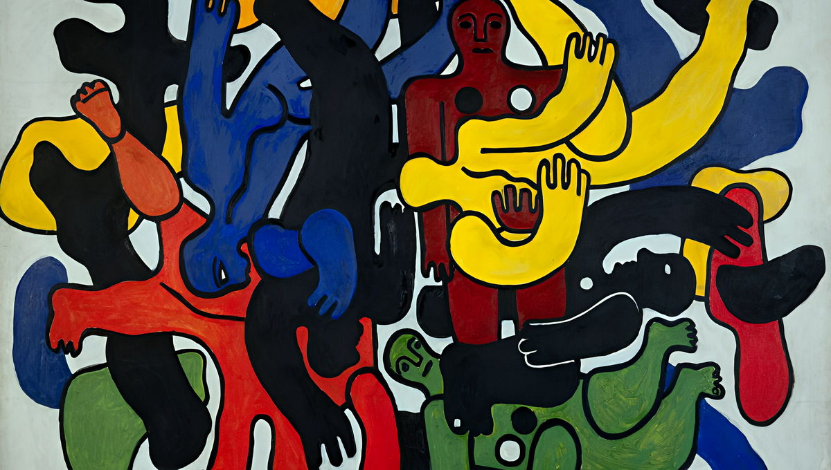 Reproduction of “The Great Black Divers” by Fernand Léger. A biomorphic and colorful work from his series on divers.