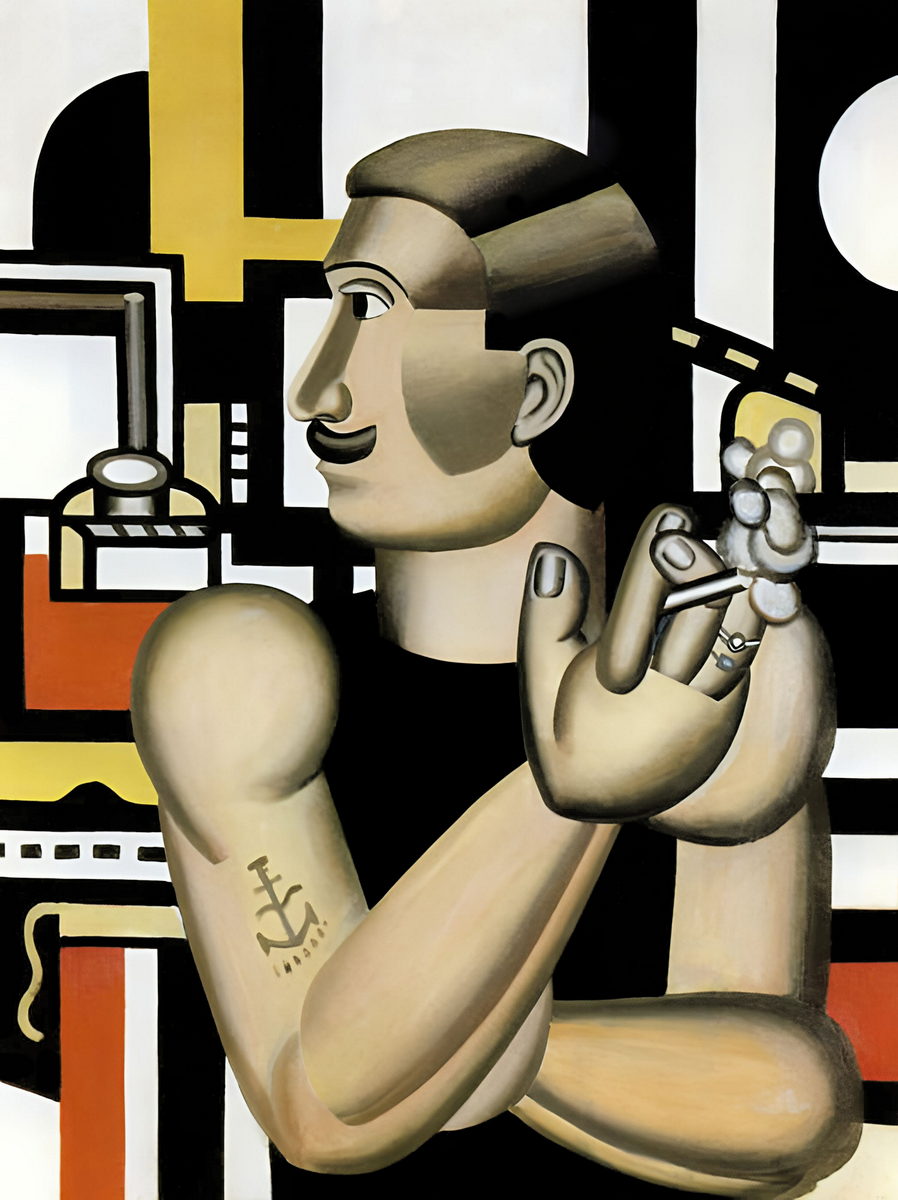 Reproduction of “The Mechanic” (1920) by Fernand Léger. An iconic Cubist (Tubism) portrait of the modern worker.