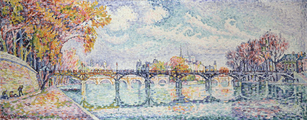 Panoramic reproduction of The Pont des Arts by Signac, an autumnal view of Paris.