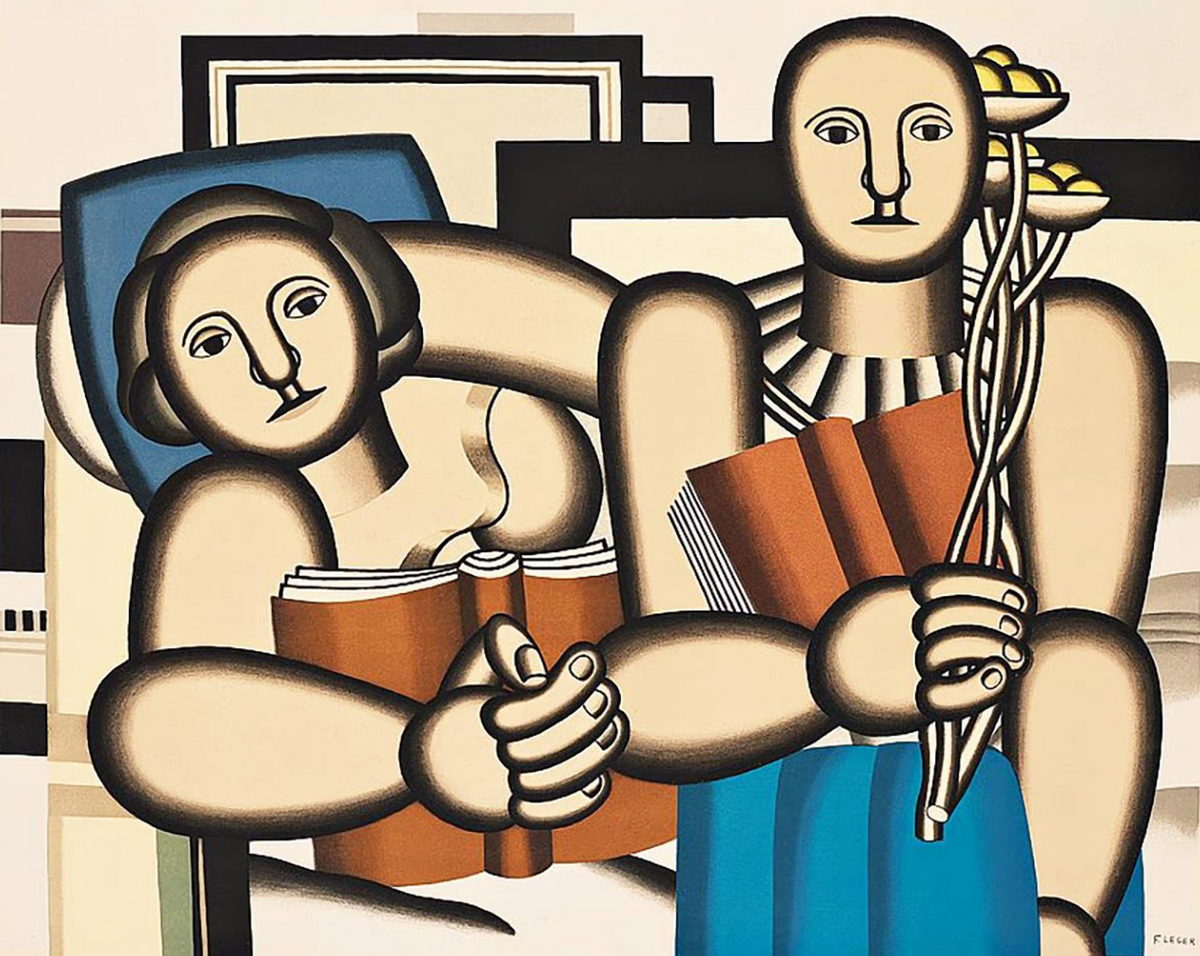 Reproduction of “The Reading” (1924) by Fernand Léger. An iconic Cubist (Tubism) group portrait with monumental figures.