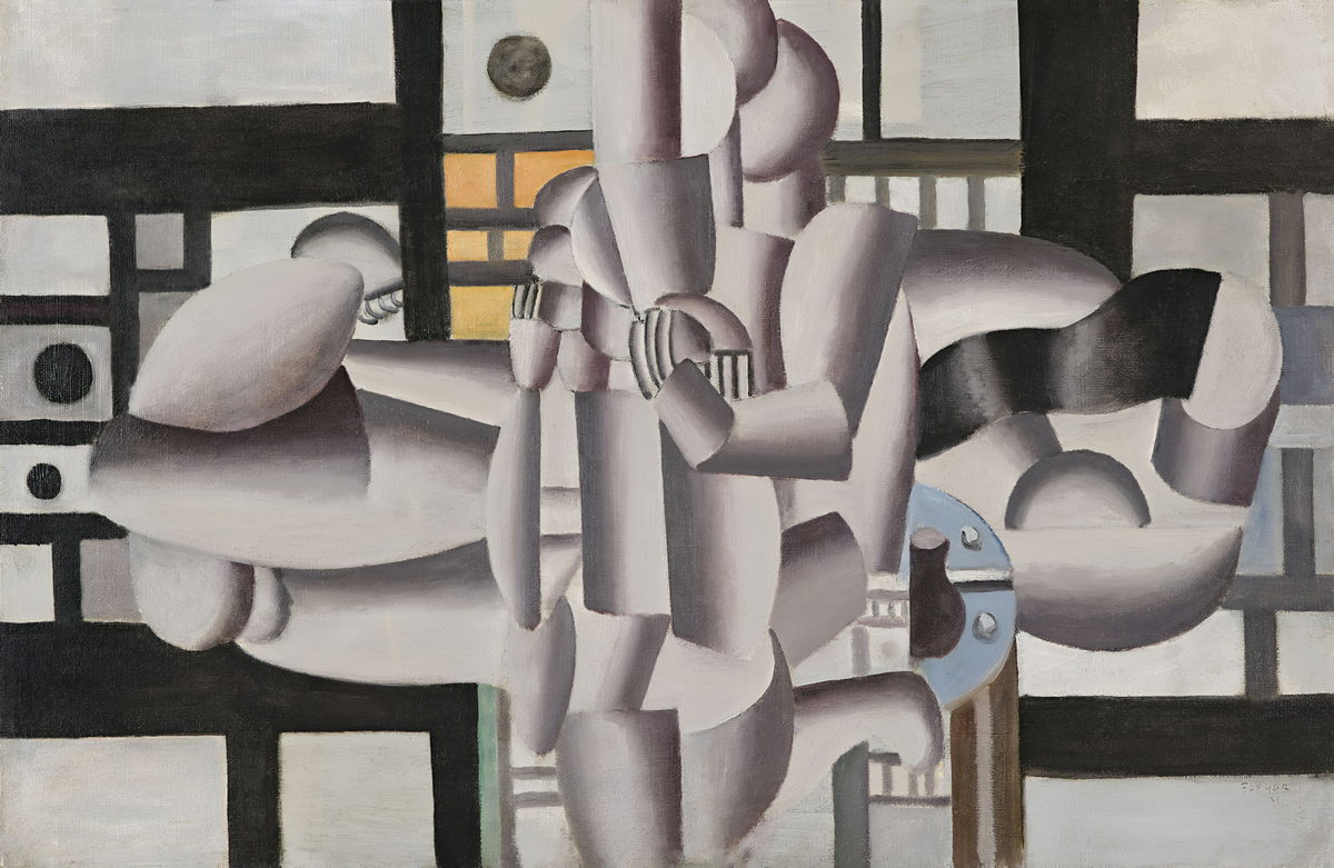 Reproduction of “The Three Women and the Still Life” (1920) by Fernand Léger. A major Tubist work with robotic female figures.