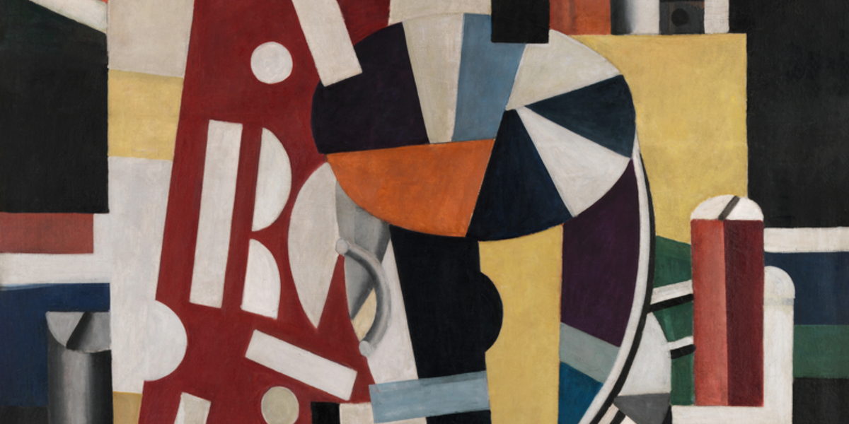 Reproduction (panoramic detail) of “The Typographer” (1917) by Fernand Léger. A mechanical Cubist (Tubism) painting celebrating the machine.