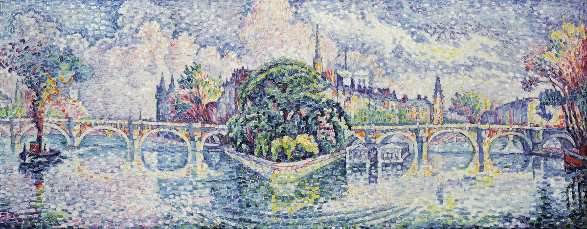 Panoramic reproduction of The Vert Galant Garden by Signac, a luminous view of Paris.