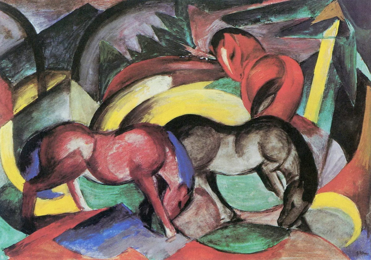 Capture the primal force of nature with “Three Horses” by Franz Marc. A painting reproduction full of raw energy.