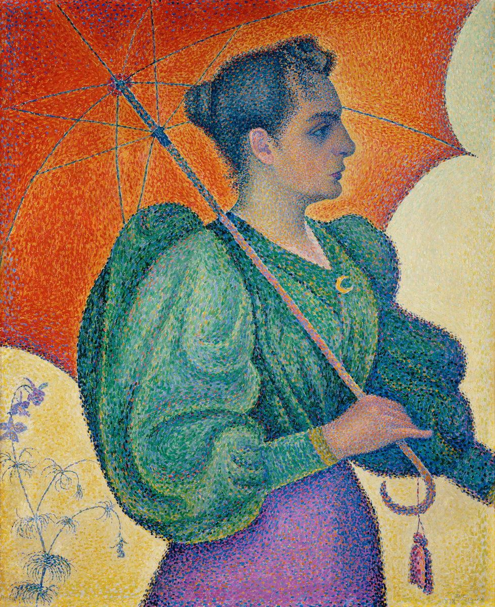 Reproduction of Woman with a Parasol by Signac, a vibrant portrait with complementary colors.